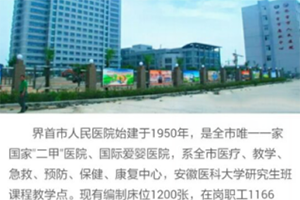 界首市人民醫院始建于一九五0年,系衛生部批準的“二級甲等綜合性醫院”,是全市...